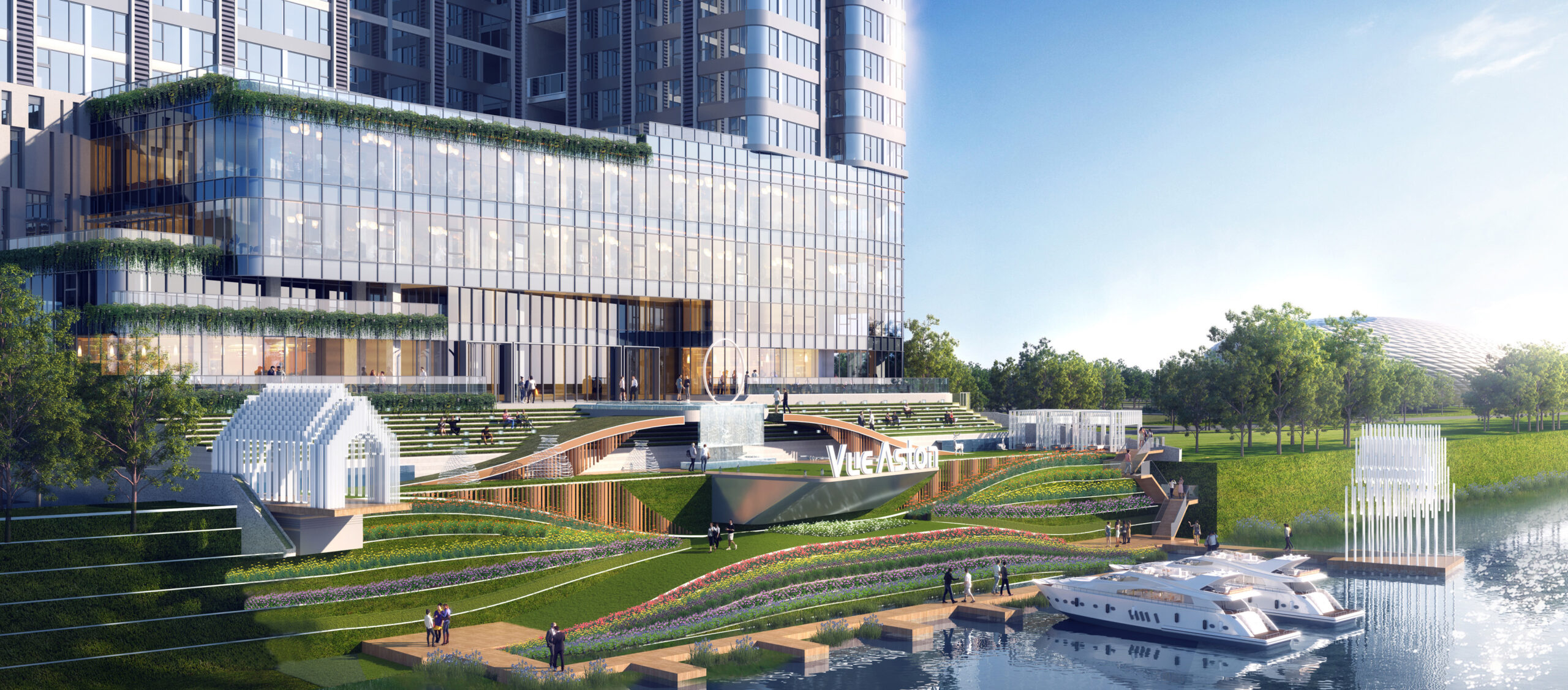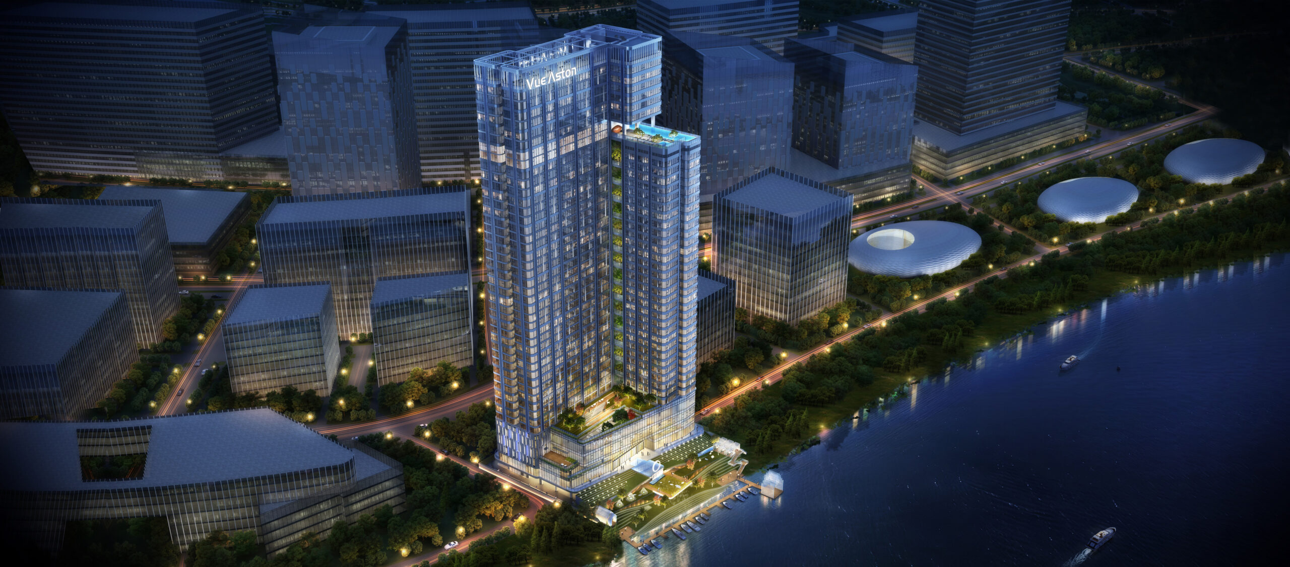 Vue Aston adopts a specially designed 5D garden system which includes the riverside green embankment, the terrace garden, the hanging gardens, the rooftop garden, and the infinity pool. These gardens are all in different heights that will highly expand your living space. When you take a stroll in the roof garden overlooking the waterscape or just sit down for a drink, you may feel like being in a resort surrounded by the great mother nature, not just a stylish apartment in the modern city.